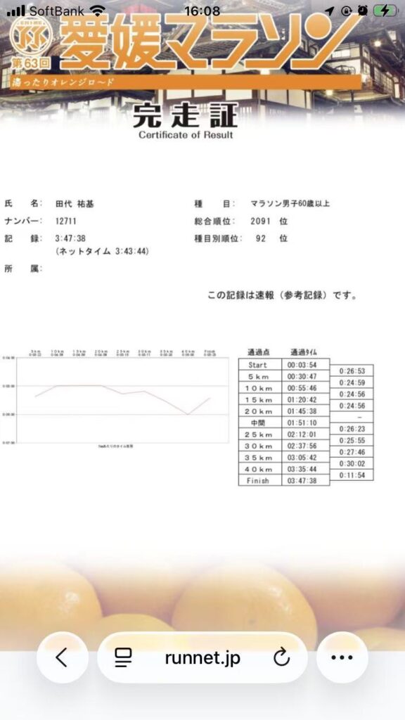 その後はごまかしながらも何とか走り切り、今年初レースは3時間43分台。